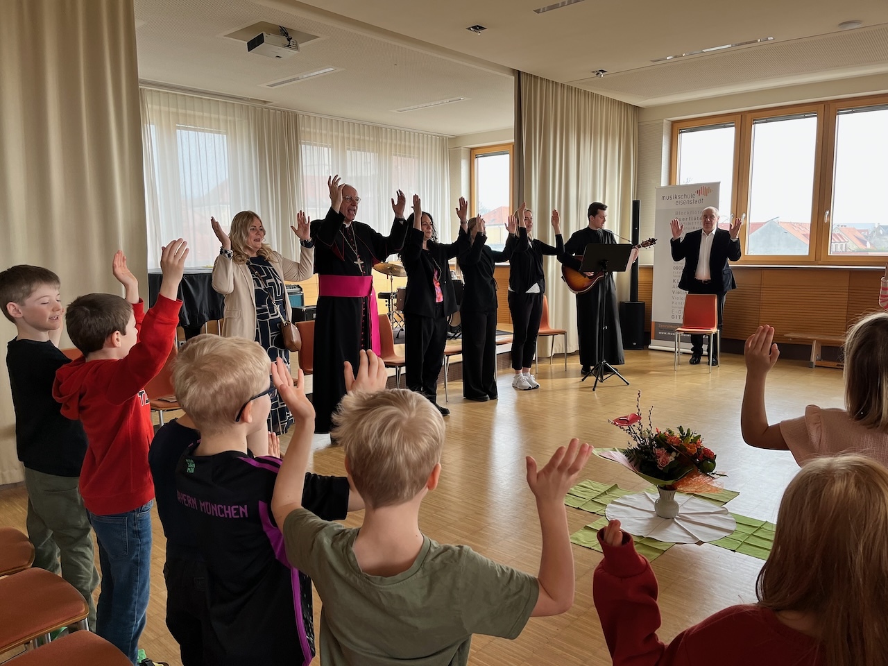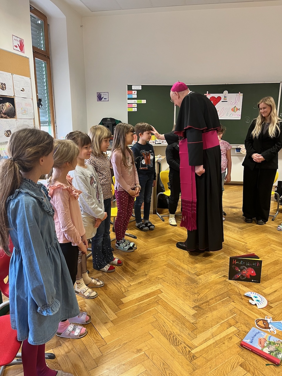 In einer offenen und kindgerechten Gesprächsrunde stellte sich Bischof Ägidius den Fragen der Kinder – von „Wie wird man eigentlich Bischof?“ bis hin zu „Was machen Sie, wenn Sie frei haben?“ war alles dabei. Auch der gemeinsame Segen und das Gebet durften nicht fehlen und rundeten die Begegnung auf besondere Weise ab.