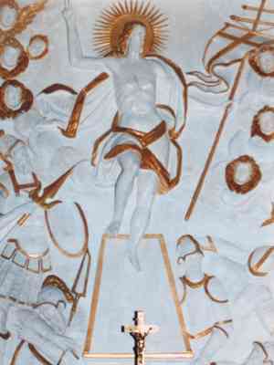 Unter den vielen künstlerischen Darstellungen des auferstandenen Christus gehört das Bild von Matthias Grünewald aus dem Isenheimer Altar zum bekanntesten und häufig verwendeten Bild- und Kartenmaterial.