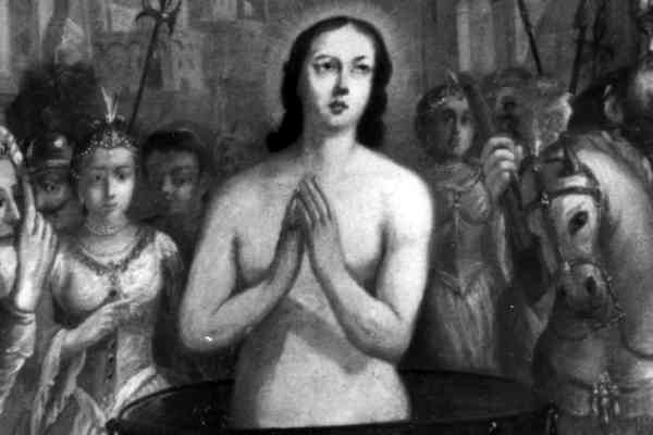 Vitus, wahrscheinlich an der Südwestküste Siziliens geboren, wurde nur sieben Jahre alt. Sein heidnischer Vater hatte von dem Kind, das von seinem Erzieher und seiner Amme Crescentia heimlich christlich erzogen worden war, gefordert, dem Glauben an Gott abzuschwören. Vitus weigerte sich und floh mit den beiden Erwachsenen nach Lucana in Unteritalien. Nach der Legende wurden die drei dort von einem Adler mit Essen versorgt. Eines Tages wurden die Christen entdeckt und in Rom Kaiser Diokletian, dem grausamen Christenverfolger, vorgeführt. Zwar heilte Vitus sogar noch den Sohn des Herrschers von der Epilepsie, doch Diokletian dankte es ihm nicht. Er ließ das Kind und seine zwei Begleiter in einen Kessel mit siedendem Öl werfen. Aber die drei entstiegen ihm unversehrt. Ein Löwe, dem sie zum Fraß vorgeworfen wurden, legte sich vor ihnen nieder und leckte ihnen die Füße. Da ließ der rasende Diokletian den siebenjährigen Vitus mit seiner Amme und seinem Lehrer auf eine Folter spannen und dann enthaupten. Mehrere Adler sollen nach der Legende die Leichen bewacht haben, bis eine Christin sie bestattete. Das Todesdatum lag um das Jahr 304. Eine andere Überlieferung berichtet, Vitus und seine Gefährten seien auf Sizilien hingerichtet worden.
