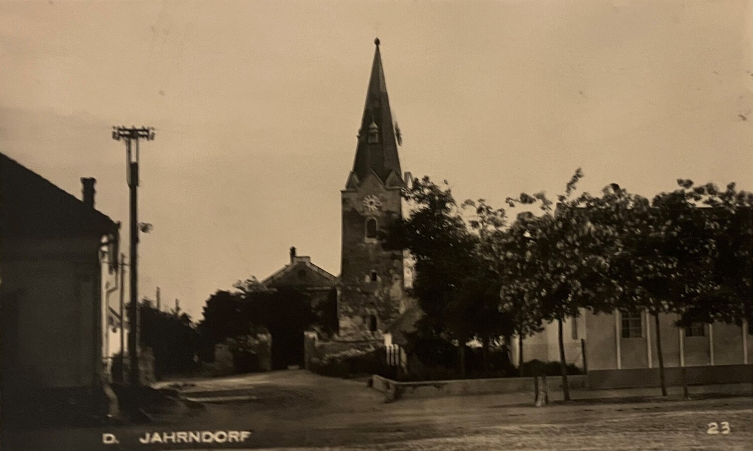 Evangelisches Leben ist in Deutsch Jahrndorf bereits im 17. Jahrhundert nachweisbar; sofort nach dem Toleranzpatent 1781 organisierte sich die Gemeinde, zunächst ebenfalls als Tochtergemeinde des benachbarten Ragendorf (Rajka, Ungarn), seit 1876 dann als selbständige Pfarrgemeinde. Das aufgelassene Gebäude der Deutsch Jahrndorfer Poststation wurde seit 1787 als Bethaus genutzt, 1837/1838 kam es schließlich zur Errichtung der jetzigen Kirche im klassizistischen Stil. Die Weihe dieser Kirche am letzten Augustsonntag 1838 ist ein schönes Zeichen der bis in die Gegenwart anzutreffenden guten Ökumene im Ort: „Man trug es absichtlich darauf an, daß die Einweihung des neuen Gebäudes an den letzten August-Sonntag als am katholischen Kirchenweihtage [Bartholomäus-Tag] fallen sollte, damit dieser Tag ein für diese kleine Ortschaft gemeinschaftlicher Freudentag in Zukunft werden möchte.“