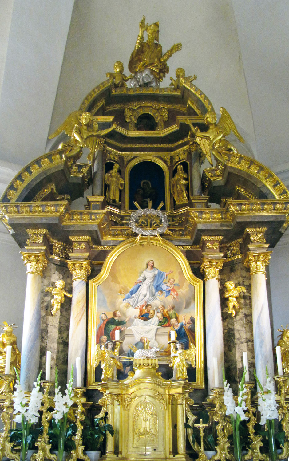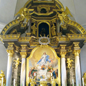 Im Mittelpunkt der Wallfahrtskirche, künstlerisch wie geistig, steht der prächtig marmorierte und vergoldete Hochaltar. Er stammt aus dem Stift Pöllau und ist der zweiten Hälfte des 17. Jahrhunderts zugeordnet. Ein großformatiges Bild zeigt die Himmelfahrt Mariens. Architektonisch angelehnt an die Wallfahrtskirche zeigt sich die Gnadenkapelle. Der Altar trägt eine Kopie des berühmten Passauer Maria-Hilf-Bildes von Lukas Cranach. Entstanden ist das Kunstwerk wahrscheinlich in der Bauzeit der Vorgängerkapelle um 1768.