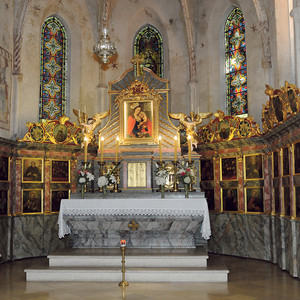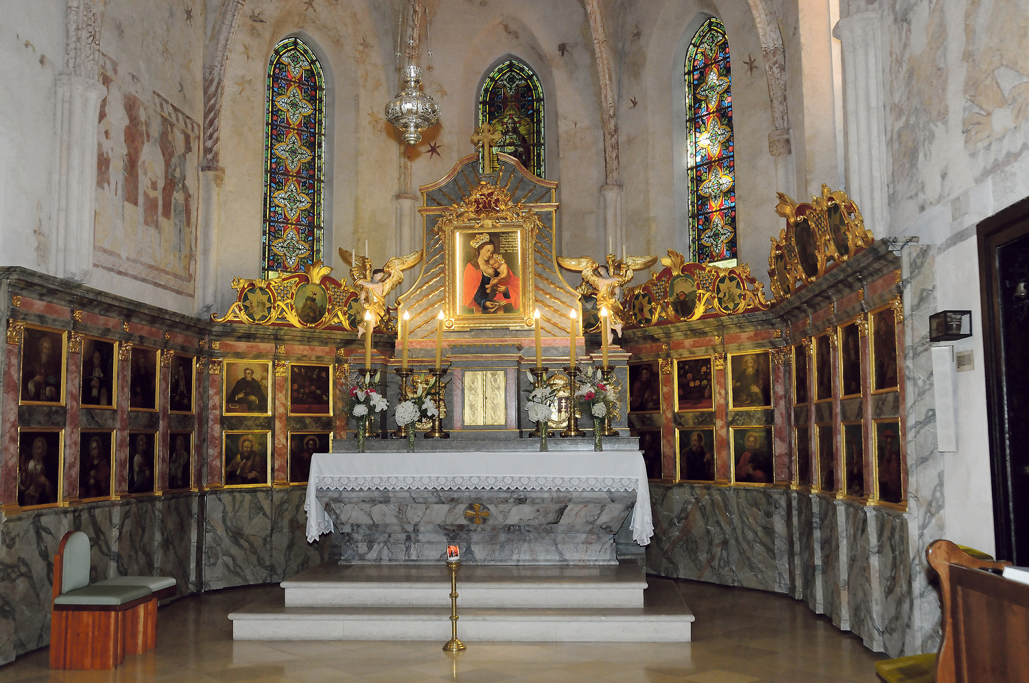 Die Pilger können so einiges bestaunen: An erster Stelle muss wohl das Gnadenbild „Maria lactans“ (Stillende Muttergottes) erwähnt werden. Eine Besonderheit ist zudem die paraventartige Bilderwand mit 34 Bildtafeln rund um den Gnadenaltar (siehe Foto), die in dieser Form wohl einzigartig ist. In der oberen Reihe sind 14 Portraits von Augustinern zu sehen. In der Mitte der unteren Reihe (hinter dem Altaraufsatz) ist Christus dargestellt, umgeben von den vier Evangelisten, acht Aposteln und vier Kirchenväter. Ikonographisch besonders wertvoll ist die Bekrönung dieser Bilderwand. Es handelt sich dabei um ovale Öltafelbilder, die jeweils von zwei runden Bildern flankiert werden. Bei Restaurierungsarbeiten in den 1990er-Jahren wurden im Südschiff Fresken aus der zweiten Hälfte des 14. Jahrhunderts freigelegt, was kultur- und kunstgeschichtlich äußerst bedeutsam ist. Auf einem Fresko sind die drei ungarischen Könige Stefan, Ladislaus und Emmerich zu erkennen. Auf der Südseite über dem Eingang zur Sakristei sieht man den Kampf des heiligen Georg gegen den Drachen.